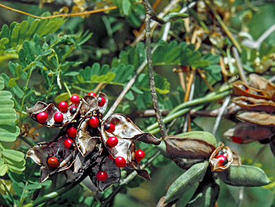 Olho-de-cabra: Suas sementes são usadas para fazer colares na África, como também na Umbanda. No candomblé elas são usadas para enfeitar ornamentos e roupa de certas qualidades de Exu. E é muito usada como olhos em muitos assentamentos de Exu. Suas folhas são usadas para fundamento de assentamento e para a lavegem de búzios e dos ojús de futuros babalawôs.