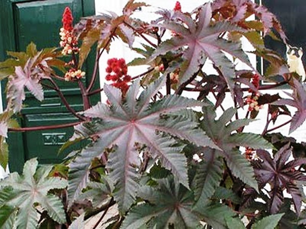 Mamona Roxa: Suas folhas servem como recipiente para arriar o ebó de Exu. Suas sementes socadas vão servir para purificar o otá de Exu. Não tem uso na medicina popular. A mamona verde pertence a Obaluaiê (Omolu).