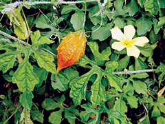 Melão-de-São Caetano (Tayuya ou Tajujá): Conhecida também como como: abóbora d’anta, ana-pinta, abobrinha-do-mato, azougue-dos-pobres, caiapó, capitão-do-mato e outros. Ela é utilizada na medicina popular de países da América do Sul como analgésico, atuando no alívio de dores. Seu cha é bom contra: reumatismo, artritismo, úlceras, nervo ciático, dermatoses, diarreia, dilatação do estômago, sífilis, dispepsias, erisipelas, escrofulose, hidropisia e leucorreia. No uso externo, a planta pode ser usada no tratamento de casos de manchas no rosto, acne, feridas e furúnculos.É usado em banho de descarrego. A rama é utilizada circundar nos Ebós de defesa. é forte purgativo.