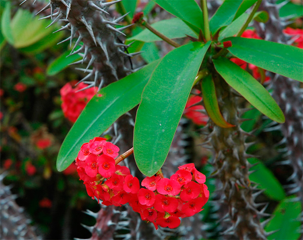 Coroa de Cristo: Muito utilizada para fazer cerdados. Segundo algumas nações é uma erva de Exu. utilizada para enfeitar assentamentos e casinhas de Exu.